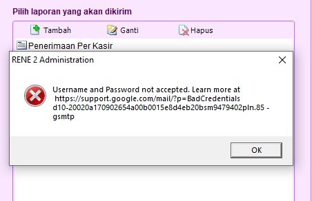 6. Jika sudah, akan tampil password seperti terlampir dan password tsb bisa dimasukkan di RENE Admin untuk pengiriman email dan isi email tujuan beserta email pengirim.