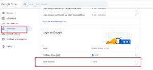 ket : sandi aplikasi akan tampil jika sudah di aktifkan verifikasi 2 langkah dan jika belum bisa di aktifkan terlebih dahulu dan kemudian akses kembali tab keamanan (security)