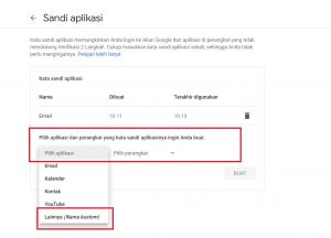 5. Klik kolom pilih aplikasi | klik lainnya (nama kustom) | masukkan namanya misalkan Rene atau lainnya | klik Buat (Generate)